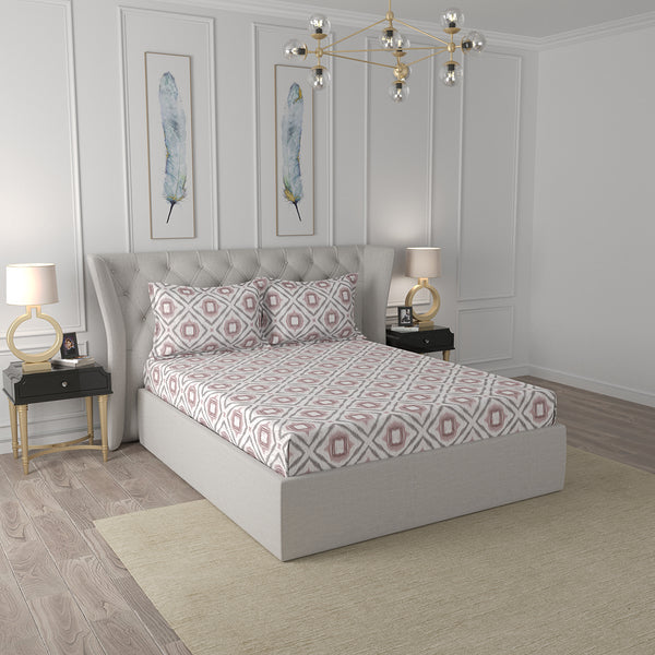 Tranquil Serenity Adley 100%Cotton Printed Bed Sheet With Pillow Case, Red